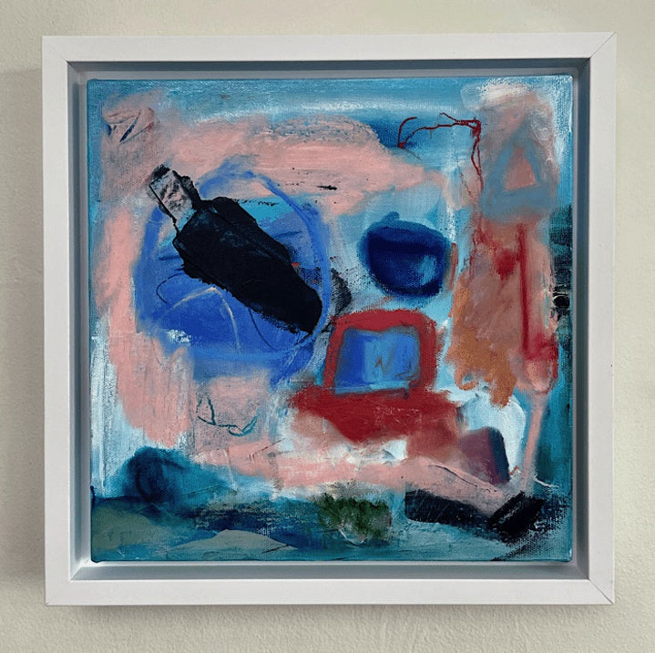 10" x 10" mixed media on canvas White wooden framed 1.5" / 10" X 10" + All canvas pieces have a varnish applied to protect against UV damage, moisture, and dust. All original works are signed and titled on the back. + Colours may vary slightly. Images have been enhanced to accurately reflect their original appearance in natural lighting. + *Please allow for a 2-3 day turnaround as each frame is manually assembled per purchase.