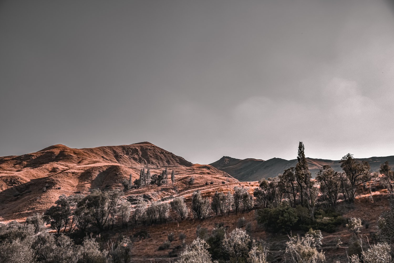This photograph captures the serene yet striking landscape of Iran, where the natural greenery has been digitally muted to emphasize the rugged beauty of the land. The contrast between the earth's warm tones and the cool, desaturated trees creates a surreal and thought-provoking scene, inviting viewers to imagine a world devoid of green. This piece challenges our perceptions of nature and urges us to appreciate the vibrant colors that often go unnoticed. Perfect for fine art collections, this image speaks to the delicate balance and interdependence within our ecosystems.
