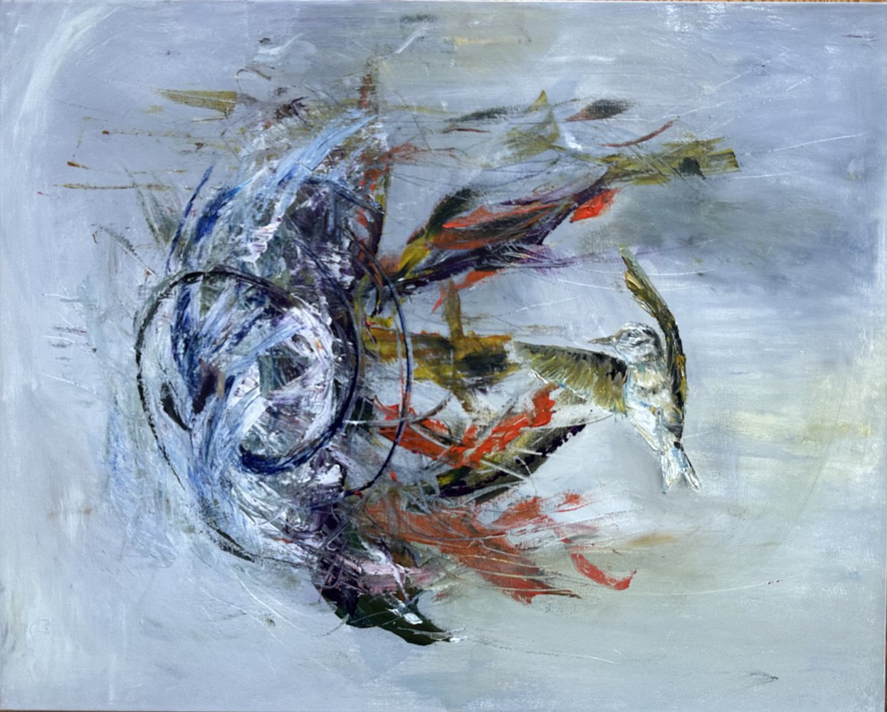 The chaos in our minds nurtured by the past, present and that to come. While facing challenges and trying not to look back. Artwork created using the palette knife.