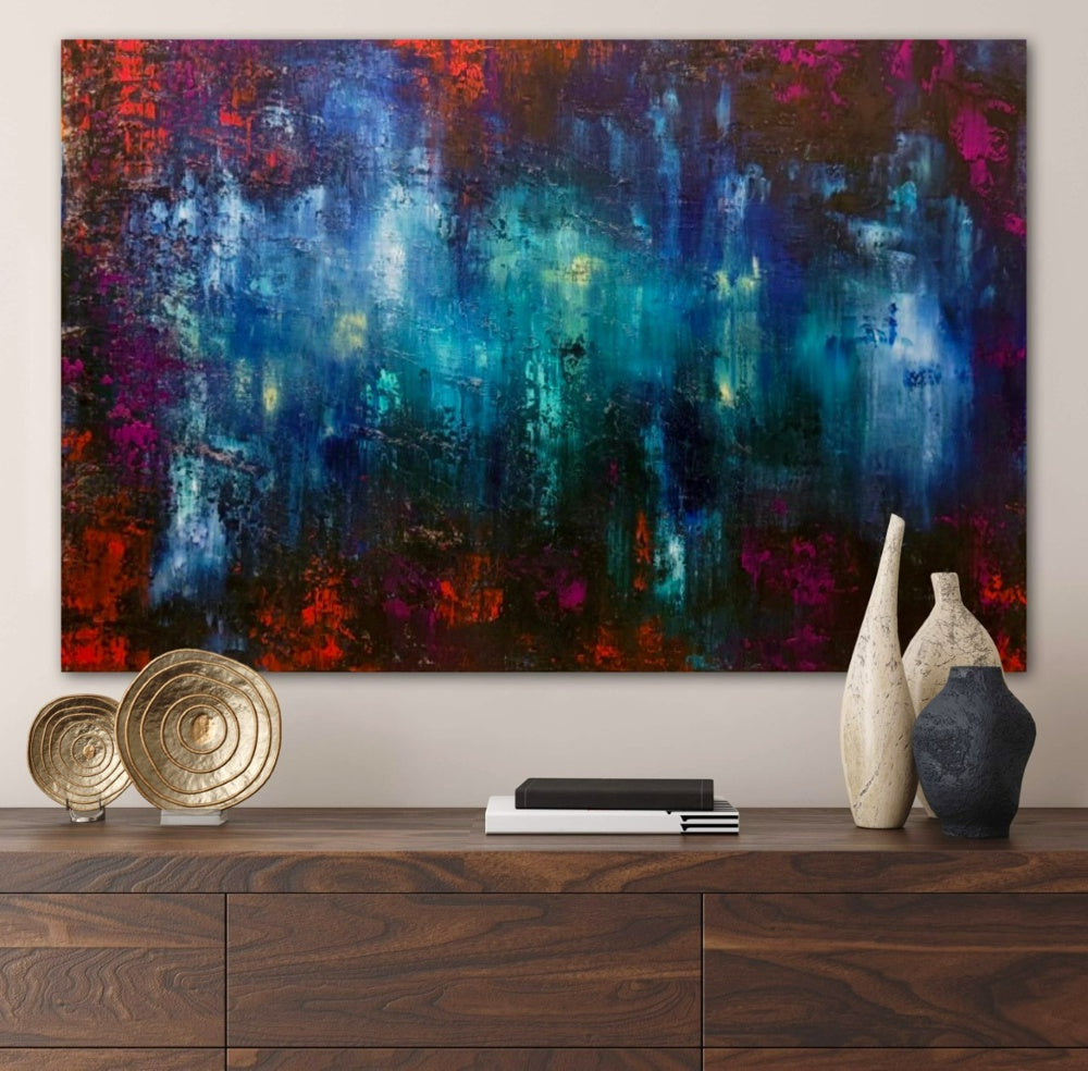 Light Beings is a new abstract expressionist painting inspired by the unknown forces that surround us, and by the mysterious things we cannot see, but perhaps we can sense. Light Beings is about love and our connection to not only the earth, but also to the universe.