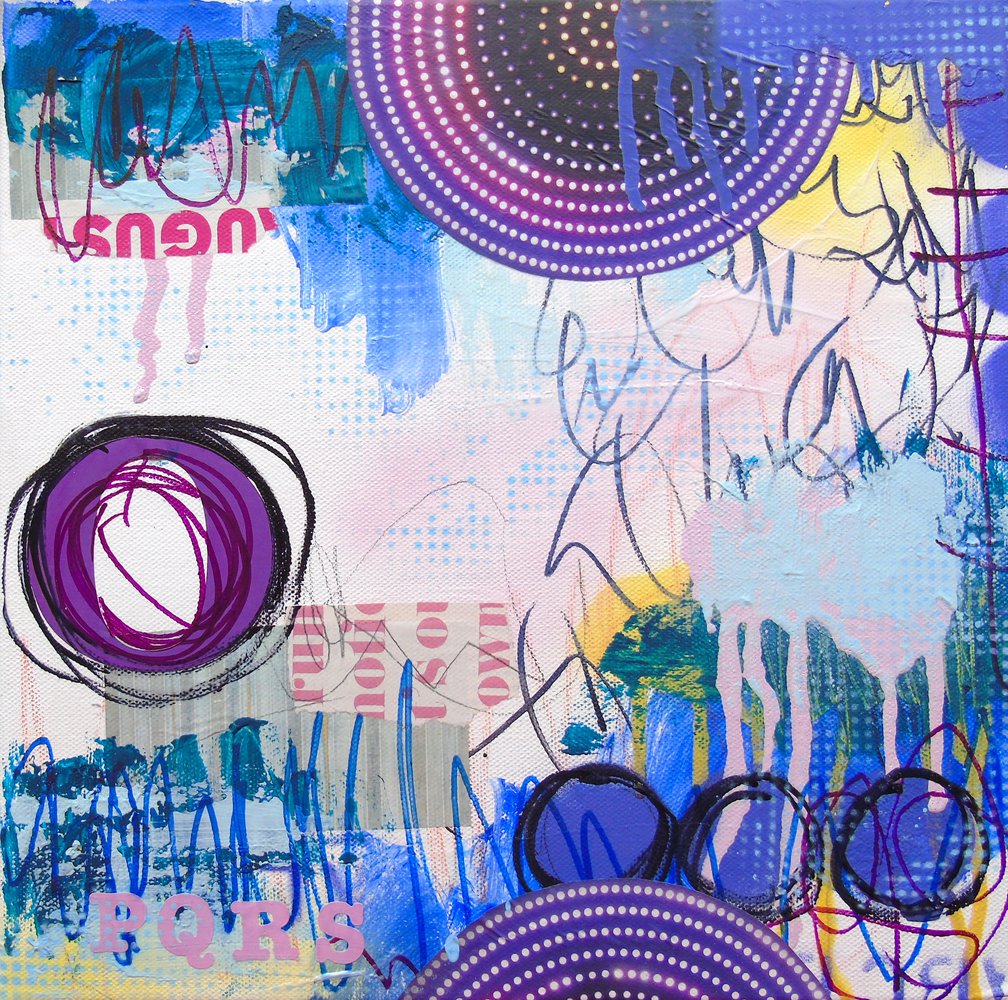 Mixed media on stretched canvas.