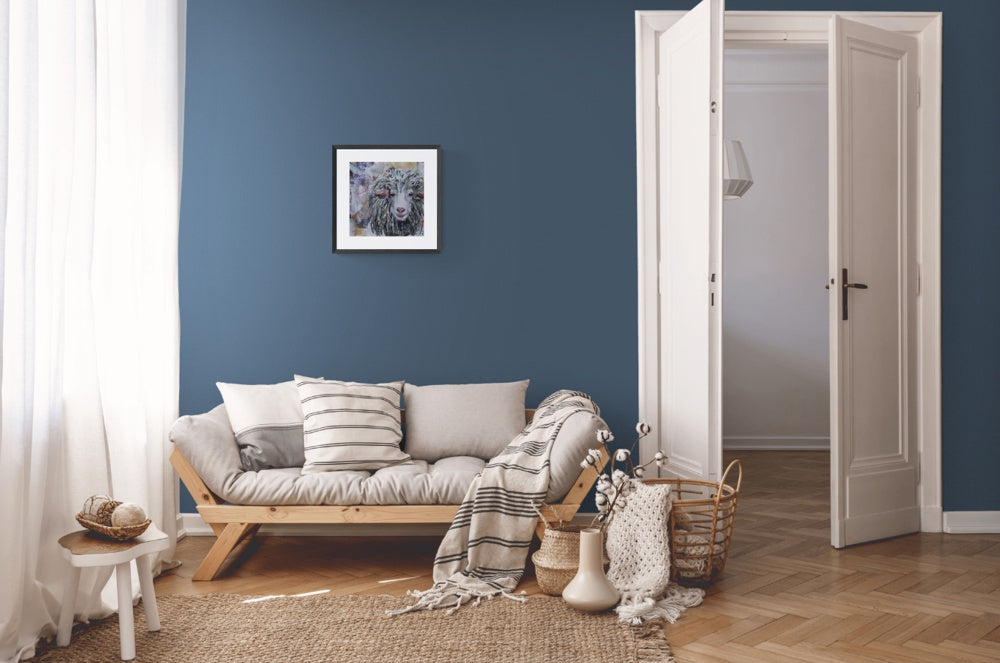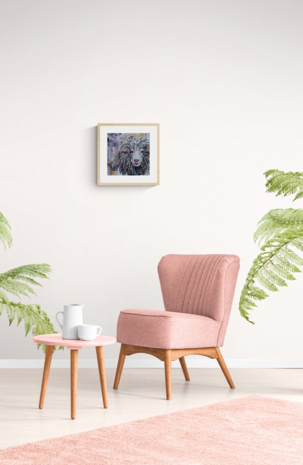 Sheep portrait, limited palette. Sheep are herbivores and need to be able to protect themselves when a predator comes along. A broad line of sight, aided by wide, rectangular-shaped pupils, allows them to see danger approaching from their peripheral vision.