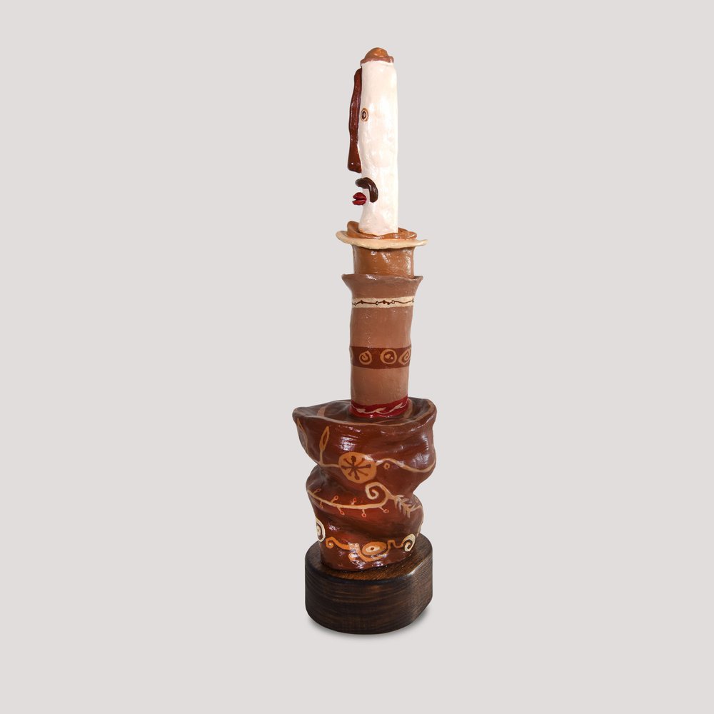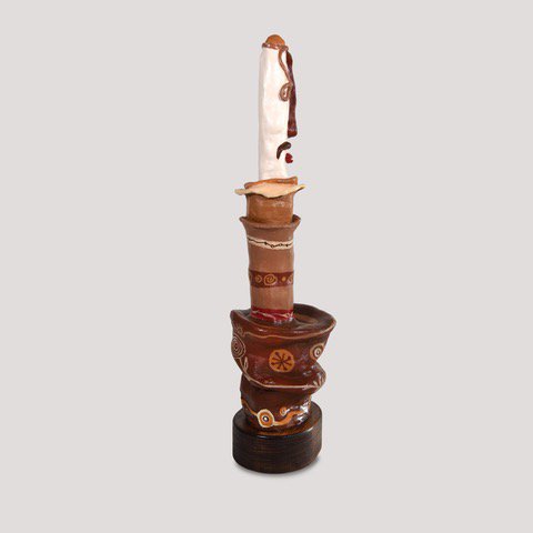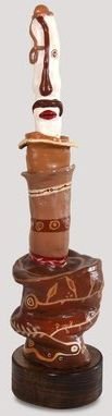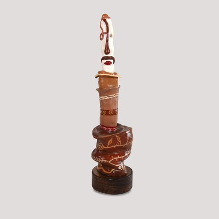This totem is symbolic of man and the earth. Symbols from nature, it is mounted on a birch wood base.